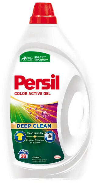Termék információk Persil Active Gel mosószer színes ruhákhoz. Tökéletes mosási eredmény és higiénikus frissesség a mosógép számára! A Persil Active Gel egyedülálló formulájának köszönhetően egyszerre biztosít kitűnő folteltávolítást és ragyogást a ruháknak. Deep Clean technológiája garantálja a hatékony tisztítási teljesítményt, mélyen behatol a szálak