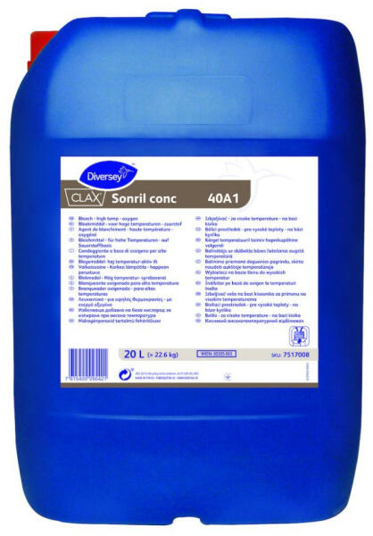 Oxigén-bázisú fehérítőszer koncentrátum, magas hőmérsékletű mosáshoz A Clax Sonril conc. egy hidrogén-peroxid tartalmú fehérítőszer koncentrátum, mely fehér és színtartós textíliák mosására alkalmas. A Clax Sonril conc. koncentrált, oxigén-bázisú, fehérítő hatású folteltávolító szert magas hőfokú mosásnál kell alkalmazni. Fehér és színtartós textíliá