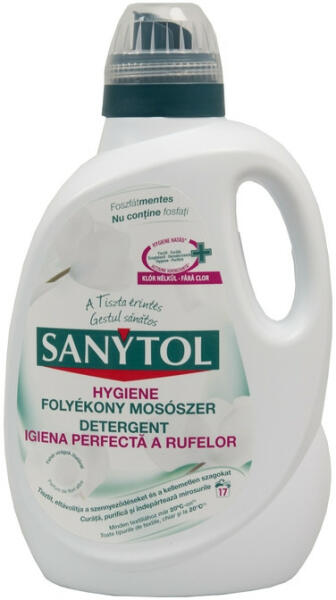 A Sanytol által kifejlesztett hygiene hatású mosószer már alacsony hőmérsékleten (20°C) is tisztít, illatosít és eltávolítja a szennyeződéseket. -egyedülálló összetételének köszönhetően, a mosószer egyformán alkalmas a fehér és a színes ruhák tisztítására -friss, tiszta illatot kölcsönöz a textíliának -ideális minden alsóneműhöz (fehérnemű, zokni, trik
