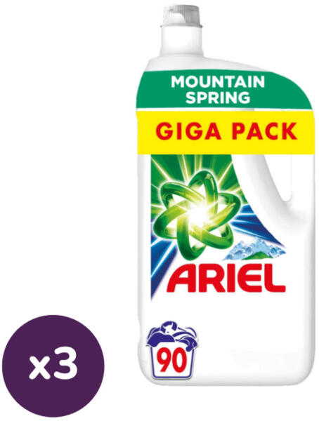 Mélytisztító hatás még alacsony hőfokon is: Az Ariel folyékony mosószer már az 1. mosás alkalmával is kimagaslóan tisztít, még alacsonyabb hőfokú és rövidebb programok esetén is. Ariel Mountain Spring Clean & Fresh folyékony mosószer 3x4,5 liter (270 mosás) A Whirlpool, Electrolux, Candy és Beko mosógépgyártók által is ajánlott Ariel bemutatja az Ariel Mountain Spr