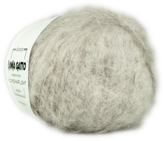 Lana Gatto Kid Mohair Light kötő és horgolófonal. Lana Gatto Kid Mohair Light - a legfinomabb mohair fonal, amely hasonlít a Silk Mohairhez csak kicsit vastagabb változatban, ami nemes hatást kölcsönöz a kötött anyagnak és könnyűvé és nagyon puhává varázsolja a kötött pulóvereket, kardigánokat, sálakat, sapkákat. A Lana Gatto Kid Mohair Light fonal valódi kid moher (62%)