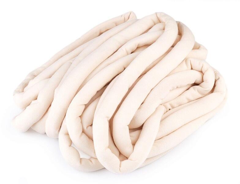 Jumbo, vastag, csőfonal töltelékkel Bellezza Marshmallow Light, 5m A Bellezza Marshmallow Light csőfonal vastag, viszont nagyon könnyű. Egy pamut, kötött csőből áll, ami meg van tömve poliamid szálakkal. A cső varrásmentes. Felhasználható extrém vastag kötőtűvel, de ajánlatosabb karral kötni vele. A fonal felhasználhatósága rendkívül sokrétű. Kiváló alapany puffok,
