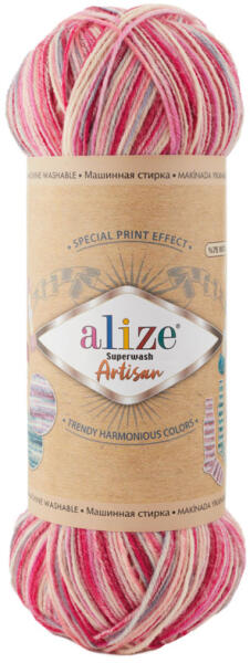 Súly: 100 g Anyagösszetétel: 75% gyapjú, 25% poliamid Szálhossz: 420 m / gombolyag Ajánlott tűméret: kötéshez 2-4mm, horgoláshoz 1-3mm Az Alize Superwash Artisan fonalat 25% poliamid tartalma miatt jó szívvel ajánljuk zoknikötéshez. 75% gyapjútartalma pedig biztosítja, hogy ne fázzanak a lábikók a zokniban. Vagy kesztyűben, mert az is készülhet belőle. De akár sapka, sál