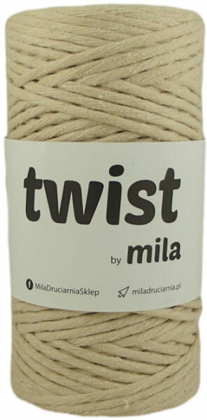 A Twist több szállból sodort zsinórfonal, föleg macrame készítésére alkalmas, de lakberendezési kiegészítők – szőnyegek, párnák, takarók, kosarak és táskák is készítehetőek belőle. Egy gombolyagból egy 50x50cm-es négyzet horgolható. Összetétel: 100 % pamut Hossza: 100m Vastagsága: kb 3mm Súly: 300g Ajánlott horgolótűméret: 6- 8 mm Ajánlott kötötűméret: 6-