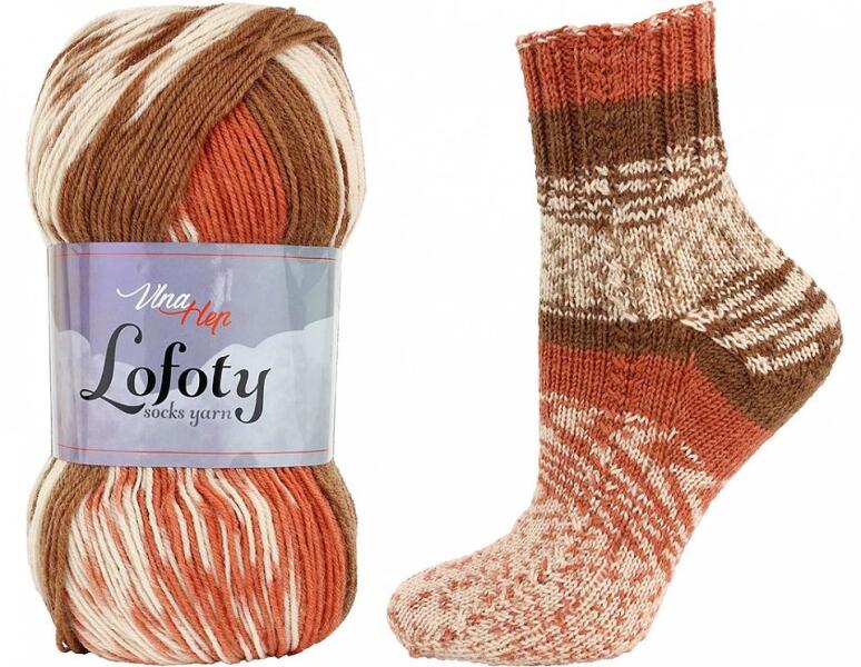 Magas gyapjú tartalmú fonal. Tökéletes zoknik kötéséhez, de persze mást is köthetünk belőle. Zokni kötésekor szépen kiadja a csíkos mintázatot. A kész zokni kimélő programon 40 fokon, gépben is mosható. Egy gombolyag elégséges egy felnőt zokni kötéséhez. Összetétel: 75% gyapjú 25% poliamid Súly: 100g Hossz: 420m Fonalvastagság: socks Ajánlott kötőtű: 2,5 - 3 Aj