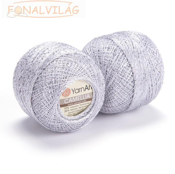 Anyagösszetétel: 70% poliester, 30% metallic Súly: 20 g Szálhossz: 190 m /gombolyag Ajánlott tűméret: 1-1,25 mm A Yarnart Camellia gyönyörűen csillogó, ezüst fémszálas horgoló fonal! Horgoláshoz, hímzéshez, díszítéshez egyaránt használható! Horgolásához 1-1,25 mm-es horgoló tűt javaslunk. 40 fokon kímélő kézi mosás javasolt.