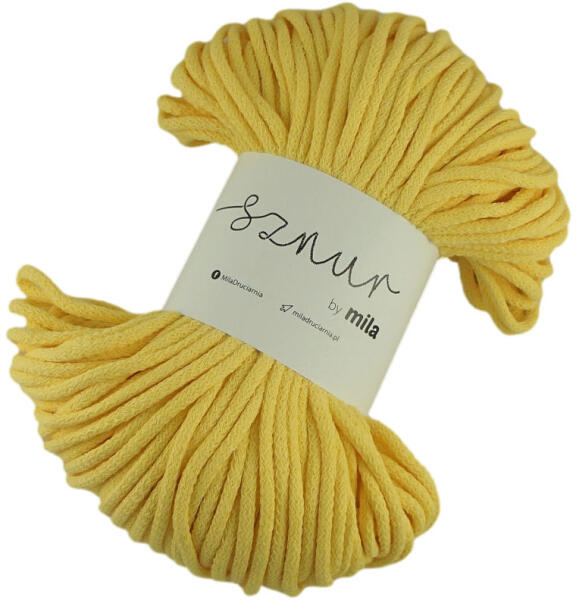 A Sznur zsinórfonalak szőnyegek, kosarak, puffok, táskák, de akár ékszerek készítésére is alkalmasak. Összetétel: pamut Hossza: 100m Vastagsága: 5mm Súly: kb 460g Ajánlott horgolótűméret: 8 - 12mm Ajánlott kötötűméret: 8 - 12mm Egy 100grammos gombolyag 40x40cm-es négyzetre elegendö 10mm-es tü használata esetén.