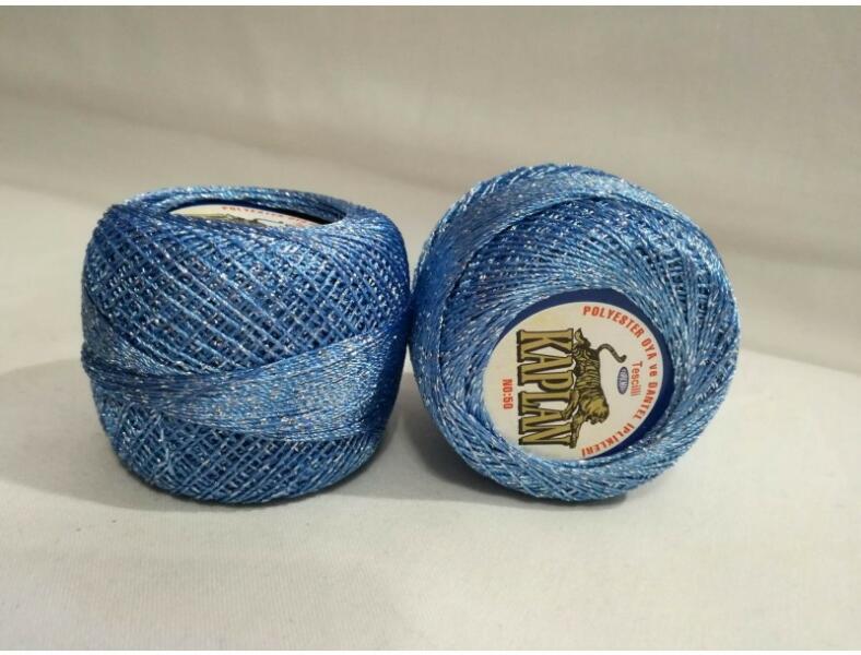 Kaplan kék színű, ezüst fém szálas, csillogós (lurexes) horgoló fonal. 50-es vastagságú horgoló fonal, mely önmagában is használható különböző horgolt, kötött, vagy hímzett kézimunkák, díszek, ruhák készítéséhez. De használhatjuk "csak" az elkészült horgolások szélének díszítéséhez (pl. : angyalkák, karácsonyi díszek, terítők). Vagy akár másik fonal m