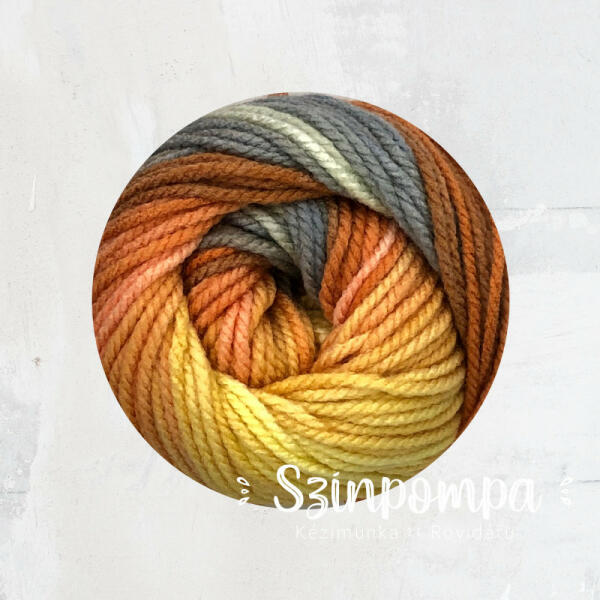 A Papatya Batik Chunky egy vastagabb, extra puha fonal. Hosszabb színátmenete teszi igazán különlegessé a kötött, horgolt darabokat. Vastagságának köszönhetően könnyen és gyorsan lehet vele dolgozni, így ideális választás, ha gyorsan szeretnél színes darabokat készíteni, legyen szó sálról, pulóverről vagy bármilyen kiegészítőről. A fonal gépben mosható, így nemc