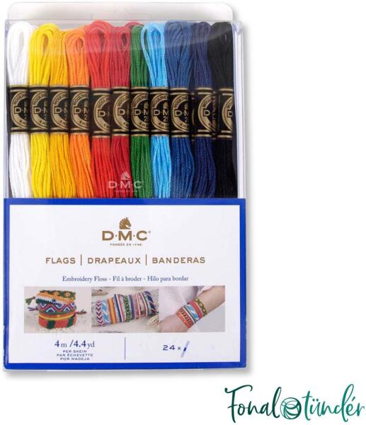 A DMC Must Have készlet a következőket tartalmazza: A DMC Flags - Zászlók - készlet a következőket tartalmazza: 24 x 4m Mouliné Special 100% pamut hímzőfonal - a legkedveltebb színekkel 24 élénk árnyalatban, ideális a zászlók színeihez árnyalatok kódszáma: 310, 312, 321, 336, 666, 669, 700, 970, 972, 973, 996, B5200 A karkötő fonáshoz itt találsz segítő videókat: www.