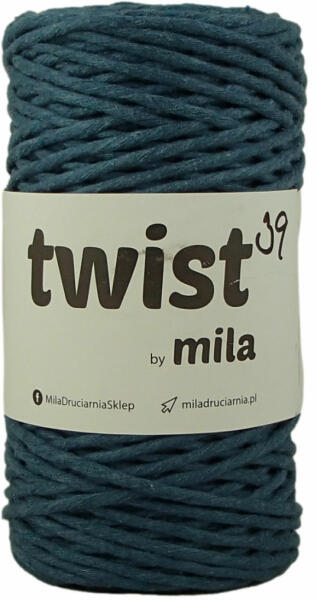 A Twist több szállból sodort zsinórfonal, föleg macrame készítésére alkalmas, de lakberendezési kiegészítők – szőnyegek, párnák, takarók, kosarak és táskák is készítehetőek belőle. Egy gombolyagból egy 50x50cm-es négyzet horgolható. Összetétel: 100 % pamut Hossza: 100m Vastagsága: kb 3mm Súly: 300g Ajánlott horgolótűméret: 6- 8 mm Ajánlott kötötűméret: 6-