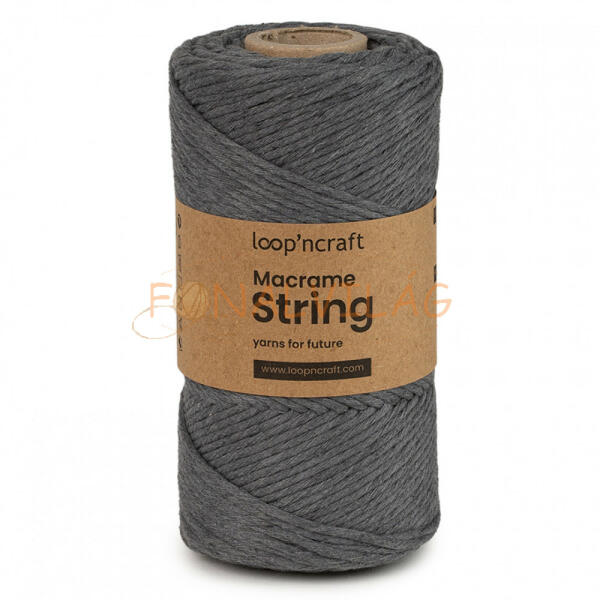 Súly: 250 g Anyagösszetétel: 70% pamut, 30% poliészter Szálhossz: 75 m / db Szál vastagság: 3mm A Macramé String gyártója „Adj a hulladéknak új életet mottóval biztosítja a hulladék textilanyagok újrafelhasználását. Ennek a fonalnak a megvásárlásával hozzájárulhatsz a természet és a világ erőforrásainak megóvásához. A Macrame String egy 100%-ban újrahasznosíto
