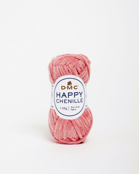 A DMC Happy család újdonsága, a Happy Chenille , egy zsenília fonal, 100% poliészter összetétellel. Különleges textúrája miatt ajánlott kifejezetten amigurumi készítéséhez, DMC horgolótűvel. Színskálája igen széles, kedvünkre válogathatunk a szebbnél szebb színek közül, akár világos pasztell színeket, vagy akár élénkebb színeket keresünk. Jól párosítható ami