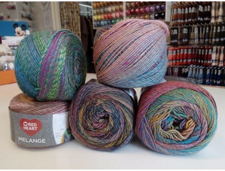 A Melange fonal a Red Heart kötőfonal család különlegesen festett színátmenetes tagja. A festésnek köszönhetően a legegyszerűbb kötés is különleges szépségű (mintájú) lesz legyen szó vállkendőről, mellényről, hosszított kardigánról, poncsóról... Egy gombolyag 150 grammos, amely 370 méter, és egy vállkendőre elegendő. Összetétele: 100% akril. Ajánlott tűmér