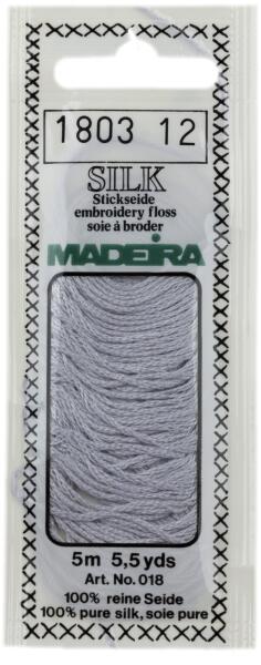 Silk Madeira hímzőfonal. Csúcstechnológiával készült, minőségi cérna. - 5m hosszúság - 100% selyem - Made in Germany Négyszálas hímzőcérna, 100% -os tisztaságú selyemből készült. Tökéletes keresztöltéshez és minden más kézi hímző technikához. Kivételes minőségű, érintése kellemes. Az egyedülálló Madeira Spiral Pack megőrzi tisztán és pormentesen selyemc