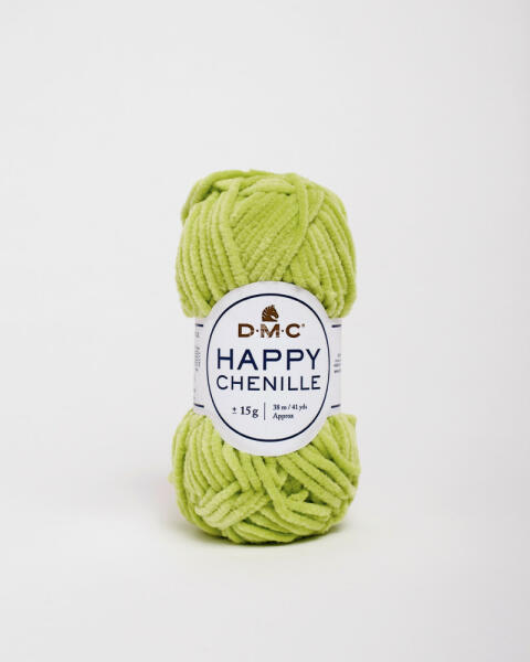 A DMC Happy család újdonsága, a Happy Chenille , egy zsenília fonal, 100% poliészter összetétellel. Különleges textúrája miatt ajánlott kifejezetten amigurumi készítéséhez, DMC horgolótűvel. Színskálája igen széles, kedvünkre válogathatunk a szebbnél szebb színek közül, akár világos pasztell színeket, vagy akár élénkebb színeket keresünk. Jól párosítható ami