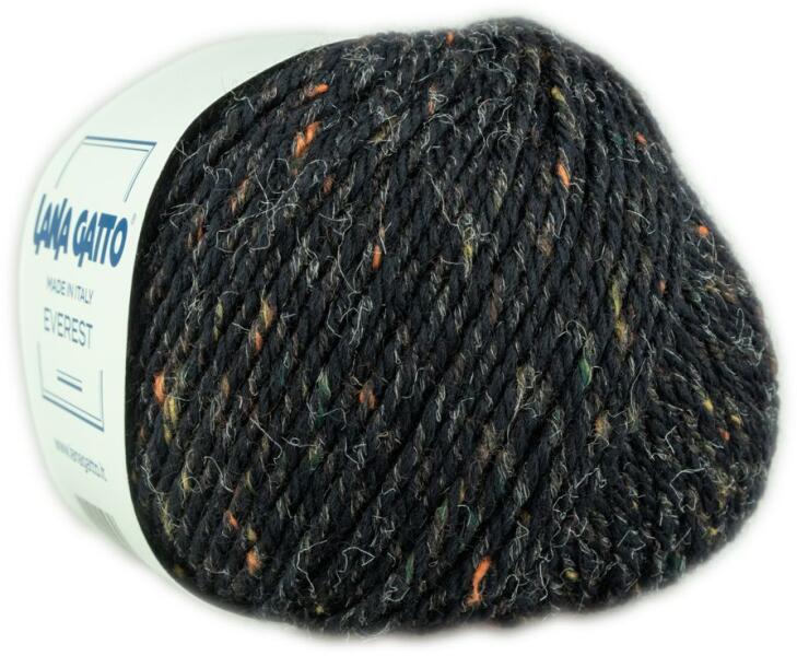 Lana Gatto, Everest tweed kötő fonal, merinó gyapjú és viszkóz A Lana Gatto által gyártott Everest tweed kötő fonal 95%-ban merinó gyapjúból készül, egy csipetnyi viszkózzal. Ideális téli pulcsikhoz, mert tökéletesen megvéd a hideg széllel szemben. Összetétel: 95% merino gyapjú, 5% viszkóz Súly: 50 g Fonal hossz: 100 m Vastagság: Aran, vastag Ajánlott kötőtű méret: