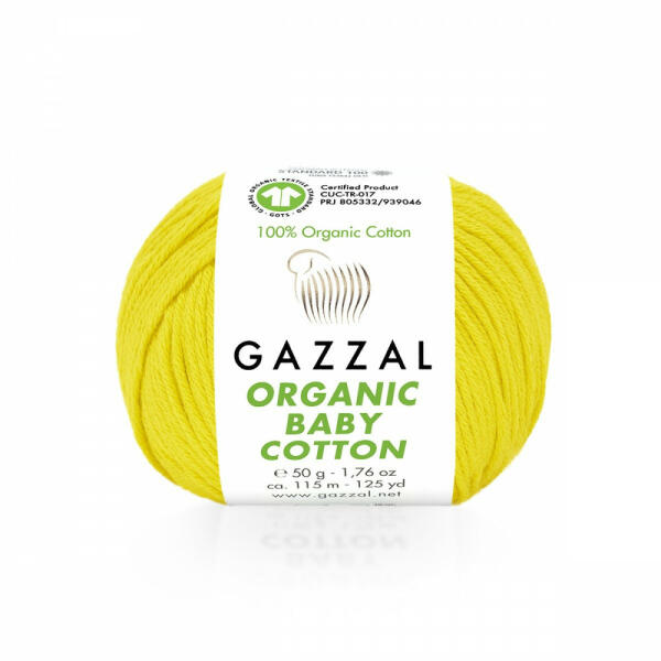 Gazzal - Organic Baby Cotton 100% organikus pamutból készült. Finomsága, pasztell és élénk színei miatt alkalmas babatermékek készítésére, de legfőbb értéke a GOTS (Global Organic Textile Standard) tanúsítvány, ami megelőzi az OEKO-TEX Standard 100 tanusítványt is. Gazzal egy olyan, sokéves múltra visszatekintő fonalgyártó cég, ahol fontos a luxus és design mellett a t