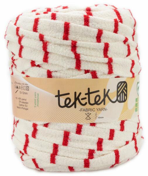 A Tek-Tek pólófonalak textilipari hulladékból készülnek, tehát egyikük sem hagyományos fonal, hanem pamut szövet. A Tek-Tek termékekkel való munka során biztosak lehetünk abban, hogy gondoskodunk bolygónkról, hisz újrahasznosított termékről beszélünk. A Kreatív csíkok/fonalak kiváló minőségű textíliákból készülnek, és a rendelkezésre álló különféle színek