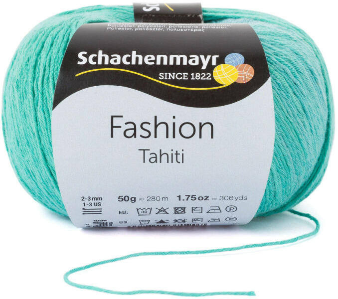 Finom színharmónia pasztell árnyalatokban. Ez jellemzi Schachenmayr Tahiti fonalát. Gyönyörű csipkék, légies minták készítésére kiválóan alkalmas, amit kiemel a hosszú színátmenet. Tavaszra és nyárra ajánljuk elsősorban. A 99% pamut mellett tartalmaz 1% poliésztert is, nagyon jó rugalmasságot adva a fonalnak. Mennyiségi ajánlás : 100g sálra, kendőre, 50g sapkára, 25