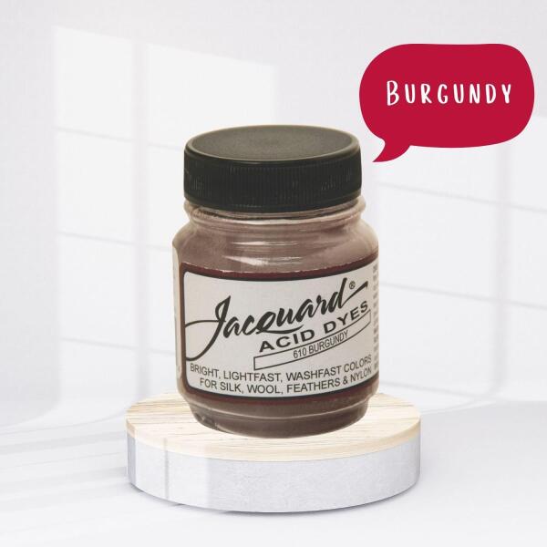 Ne ijedj meg a névtől – az egyetlen sav, amit használnod kell, a fehér ecet vagy a citromsav, amit a festékfürdőhöz adsz. A fonal, és textil festésén kívül a Jacquard Acid Dyes közvetlen festésre vagy nyomtatási alkalmazásokra is használható, gőzöléses rögzítéssel. Részletes technikai útmutatót itt találsz: Jacquard Acid Dye