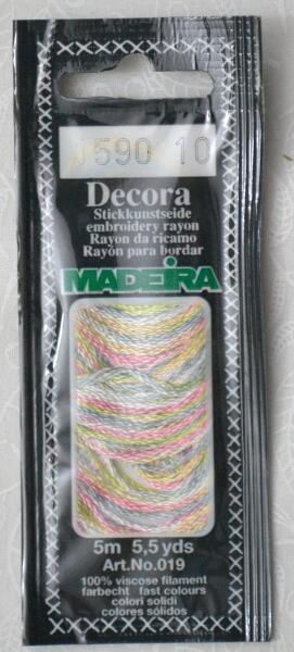 Madeira Decora hímzőfonal a Madeira gyártótól. Csillogó fényű cérna, mely kézi hímzéshez tökéletes. Jó minőségű, színét megőrzi több mosás után, jól bírja a nagy hőmérsékleten való mosást is. Összetétel: 100% viszkóz. 4 szálból áll. Egy gombolyag 5 m hosszúságú. - hosszúség 5m - 100% viszkóz - Made in Germany
