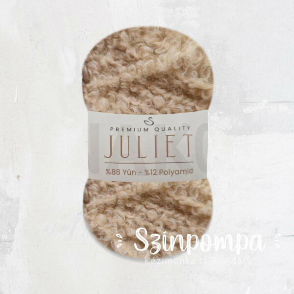 A Nako Juliet fonala egy buklé fonal. Különlegességét a speciális sodrási technika által a fonalon keletkező csomószerű kis hurkok adják, így lesz ilyen érdekes textúrája a szálnak. 88% gyapjútartalmának köszönhetően igazi őszi-téli fonal. Minden tulajdonsággal rendelkezik, ami a gyapjúra jellemző, például jól tartja a meleget, ami télen nagyon jó, ha fázunk. Poncs