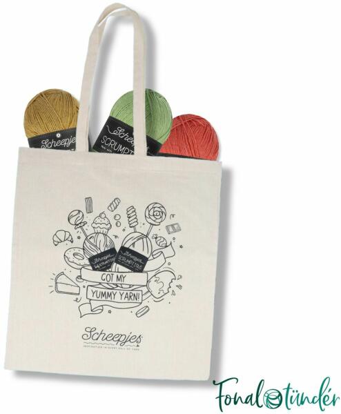 A Scheepjes Scrumptious vállra akasztható vászontáská val magaddal viheted kedvenc fonalaid és aktuális kötésed bármerre is mész. Ha a környezetvédelem számodra is szívügy, akkor a Scrumptious a Te fonalad és ez a Te vászontáskád! A Scheepjes Scrumptious egy finoman puha, környezettudatos , közepes (3) vastagságú, 50 % prémium akril, 50% újrahasznosított poliészter fona