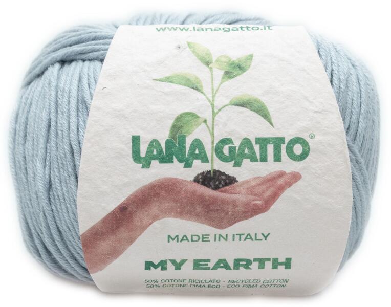 Lana Gatto My Earth kötő/horgoló fonal, újrahasznosított és Pima pamut és ajándék virágmagvak. A Lana Gatto ma már a fenntarthatóság és az innováció elveit követi a gyártás folyamán. A termelés hatékonysága és a környezet tisztelete közötti egyensúly megőrzése a cél a munkafolyamatok során. Emiatt a Lana Gatto gyáraiban tisztítja a gyártási folyamat során felha