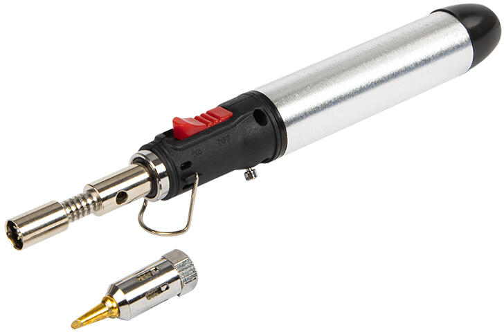 Termék részletekTöbbfunkciós gázforrasztópáka kényelmes fogantyúval és 15 ml-es gáztartállyal. Fő jellemzők:- Többfunkciós gázforrasztópáka többek között forrasztáshoz és olvasztáshoz. Forrasztáshoz és olvasztáshoz- Kis súly és méretek- Kiváló minőségű acélból készült- Kiegészítő hegyet tartalmaz- Nagyon könnyű töltés a tartályba- ON/OFF gomb- Kényelmes műanyag foga