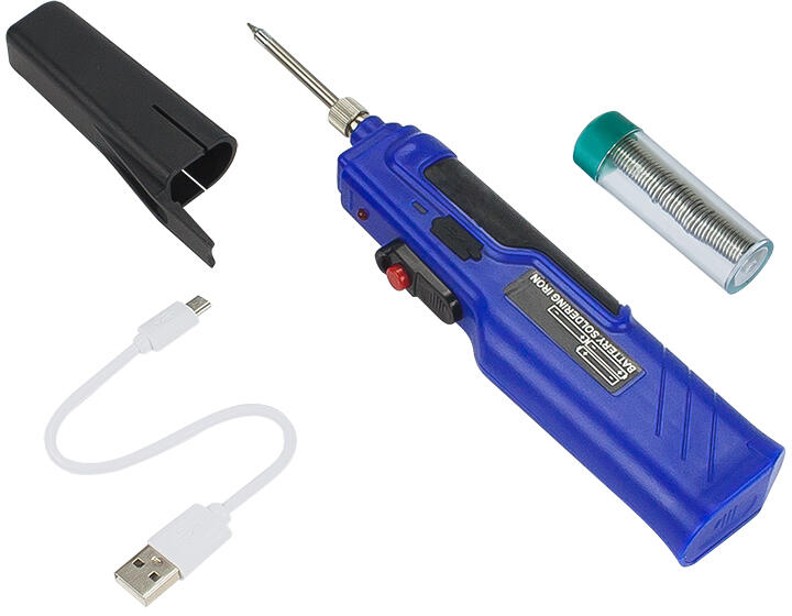 8 W-os forrasztópáka 3 db 1,5 V-os AA LR6 elemmel működik Forrasztópáka jellemzői: -elemmel vagy micro USB porttal működtethető - 15 másodperc alatt felmelegszik és kevesebb mint 30 másodperc alatt lehűl - folyamatos működés kb. 1 órán keresztül egy új elemkészlettel alkalmazások: - professzionális és hobbi - elektronikus alkatrészek forrasztása áramforráshoz való hoz