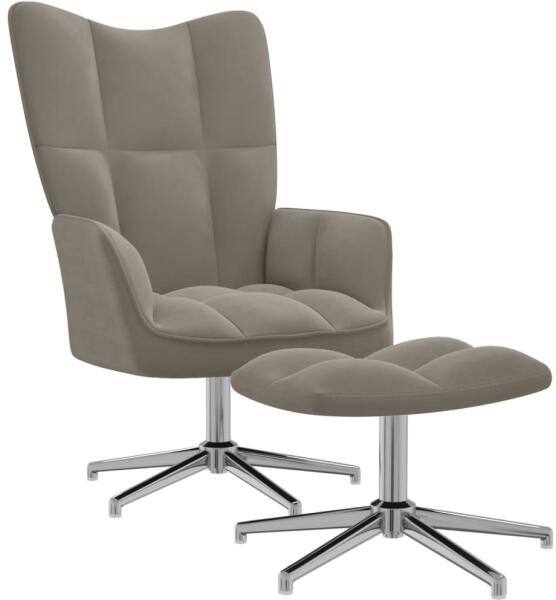 Ez a lábtartóval ellátott pihenőfotel sikkes, elegáns megjelenésével egy kis modern hangulatot csempész otthonába. A négyzetes varrásoknak köszönhetően a karosszék gyönyörű megjelenésű. A vastag habszivacs párnázás és a puha tapintású bársonykárpit optimális kényelmet nyújt. A fotel 360 fokban elforgatható, így rendkívül rugalmasan használható. A pihenőszék