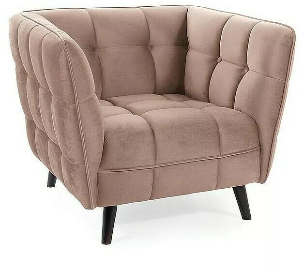 Elegáns, kárpitozott fotel luxus bársony kárpitozással és wenge fa lábakkal. A steppelt kialakítás és a kényelmes ülőfelület tökéletes kombinációja a stílusnak és a funkcionalitásnak. Luxus és kényelem egy elegáns bársony fotelbenA Castello Velvet fotel a modern dizájn és a klasszikus kényelem tökéletes ötvözete. A sötét bézs színű bársony kárpitozás és a w