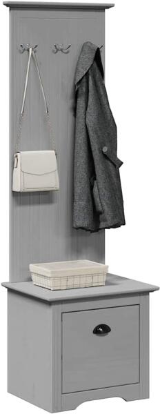 Ez a klasszikus stílusú helytakarékos előszobaszekrény kis helyet foglal, de nagy tárolóhelyet biztosít. Tartós anyag: A tömör fenyőfa erősségéről és tartósságáról ismert. Egyenes erezete és jellegzetes csomói hozzájárulnak rusztikus varázsához. A szerelt fa tartós és stabil anyag sima felülettel, amely ellenáll a nedvességnek, a vetemedésnek és a hasadásnak, íg