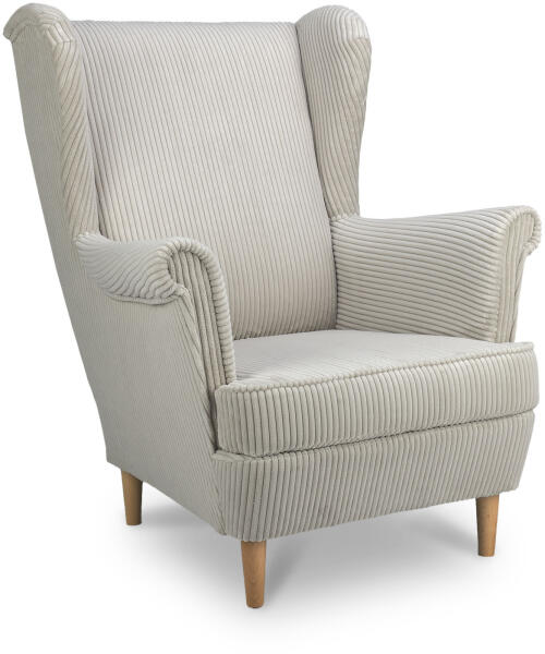 Egy kényelmes és egyben gyönyörű füles fotelre vágyik, amelyben akár az egész napot is eltöltené? A krémszínű DORY füles fotel pont ilyen, ugyanis minőségi anyagokból készült és már évek óta tesztelt formával rendelkezik, csak most új köntösbe bújtatva. Gyönyörű és ellenálló kordbársony Lincoln szövettel kárpitozott, amely érdekes csíkos struktúrával, luxu