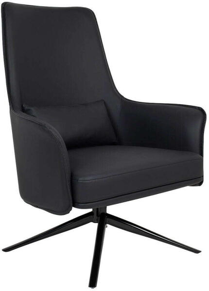 VICTOR fotel fekete PU. A klasszikus és elegáns karosszék magas háttámlával mind a modern dizájnban, mind az irodai terekben megtalálja a helyét. A Victor teljes egészében ökobőrrel kárpitozott, az alapja pedig fekete festett fémből készült. A mellékelt párna a vizuális díszítés mellett az ülés mélységét is beállítja, ami javítja a használat kényelmét. Méretek: