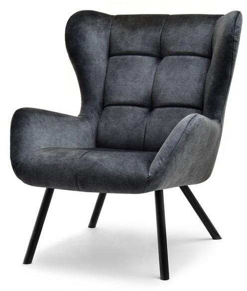 További méretek: ülőlap mélysége (a háttámláig) - 53 cm ülőlap belső szélessége - 42 - 49 cm ülőlap magassága - 45 cm háttámla magassága - 62 cm karfák padlótól mért magassága - 57 cm Felhasznált anyagok: ülőlap - velúr kárpit lábazat - porszórt acél Színek: ülőlap - grafit lábazat - fekete .