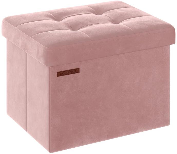 Tároló puff pad tárolóhellyel, összecsukható üléses láda, tárolódoboz fedéllel, zsámoly, 31 x 41 x 31 cm, maximális teherbírás 130 kg, előszoba, nappali, hálószobába, pasztell rózsaszín: [Elegáns és strapabíró] Ez a tároló puha bársony anyagból készült, aprólékos varrással az elegáns megjelenés érdekében. A teteje és az oldalai vastag MDF panelekkel vannak