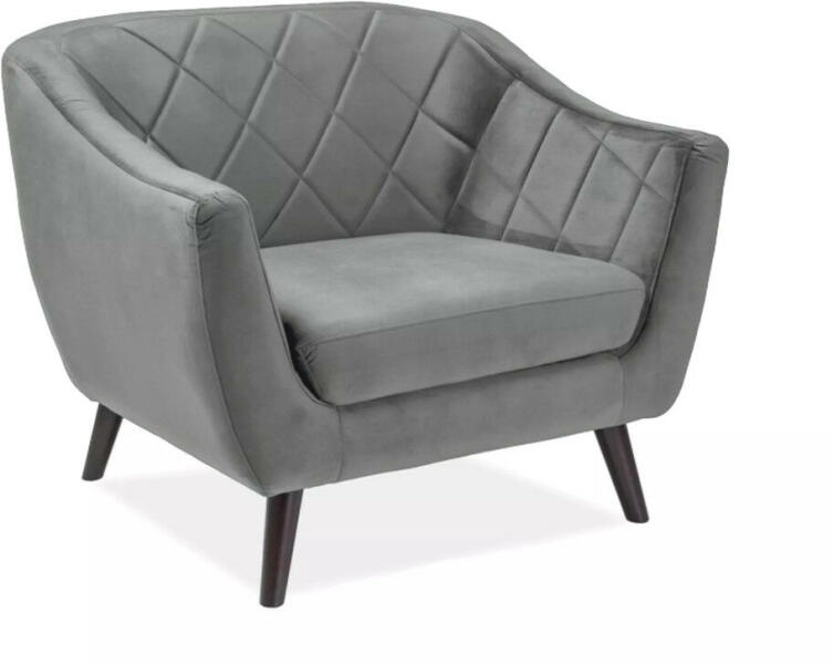Luxus és kényelem egy elegáns fotelben A Molly Velvet fotel a modern dizájn és a klasszikus kényelem tökéletes ötvözete. A szürke bársony kárpitozás és a wenge színű fa lábak harmonikus kombinációja elegáns megjelenést kölcsönöz a bútornak. A steppelt háttámla nem csak dekoratív elem, hanem extra kényelmet is biztosít. A fotel széles, 105 cm-es mérete és 56 cm-es