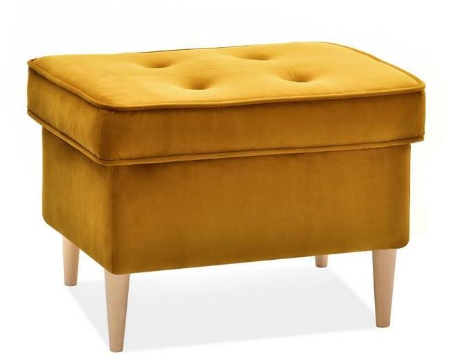 Felhasznált anyagok: ülőlap - velúr szövet talpazat - fa Színek: ülőlap - mustársárga talpazat - bükk