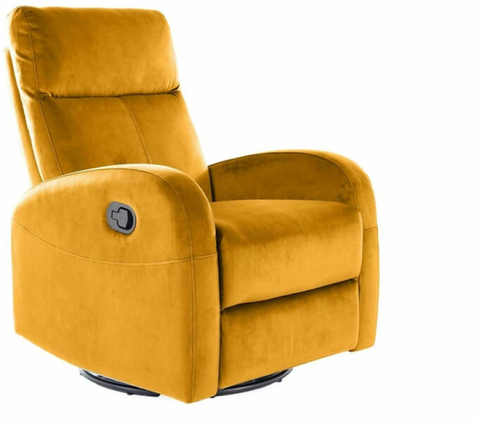 Luxus kialakítású, kinyitható és hintázó funkcióval rendelkező fotel curry színű bársony kárpitozással. Tökéletes választás a maximális kényelem és stílus kedvelőinek. Maximális kényelem és stílus egy bútorbanAz Olimp Velvet relax fotel a modern design és a funkcionalitás tökéletes ötvözete. A curry színű bársony kárpitozású fotel különleges megjelenést k
