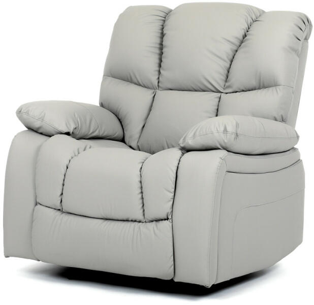 Kényelmes pihenés elektromos vezérléssel A Pegaz Buffalo elektromos relax fotel a modern kényelem megtestesítője. A szürke műbőr kárpitozású fotel elegáns megjelenést kölcsönöz bármely nappaliban. A masszív fém váz és a minőségi műbőr borítás tartósságot és strapabíróságot biztosít. Az elektromos vezérlésnek köszönhetően egyszerűen állítható a kívánt