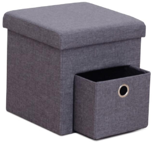 Nappali bútor > Ülőkék és babszákok > Puff, szürke, SETIN Puff rakodótérrel és fiókkal SETIN Anyag: anyag A szövet kopásállósága: 90 000 Martindale Szín: szürke Méretek (SzéxMéxMa): 37,5x37,5x38 cm Ülésmagasság: 38 cm Ülésmélység : 37,5 cm Terhelhetőség : 100 kg Bontásban szállítva.