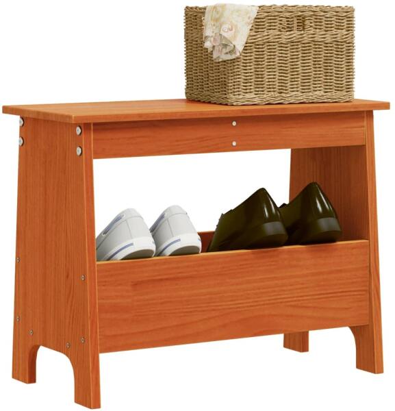 Teremtsen meleg és barátságos környezetet közvetlenül az ajtó mellett ezzel a fa előszobapaddal! Tömör fenyőfa: Ez az előszobai pad tömör fenyőfából készült. A tömör fenyőfa egy gyönyörű, természetes anyag. A fenyőfa egyenes erezetű, a csomók pedig jellegzetes, rusztikus megjelenést kölcsönöznek a bútornak. Bőséges tárolóhely: Az alsó polccal ez a bejárati p