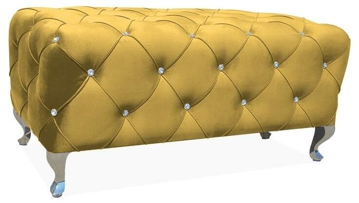 Hestia téglalap alakú zsámolyHestia négyszögletes zsámolyAz én házam, a kastélyom. A Hestia zsámoly nagyszerű otthoni kiegészítő, amelytől úgy érezheti magát, mint egy kastélyban. A gazdagon párnázott és fedett bársony szövetkel extra kifinomultságot kölcsönöz a lakhelyének. A hasonló varrással és ezüst strasszokkal díszített díszítés minden látogatót elkáp