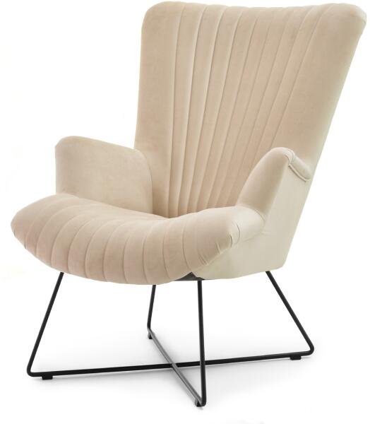 További méretek: ülőlap mélysége (háttámláig) - 45 cm ülőlap belső szélessége - 42 cm ülőlap magassága - 45 cm háttámla magassága - 65 cm karfák magassága - 20 cm Felhasznált anyagok: ülőlap - velúr kárpit TECTUM hajlított talpazat - porszórt acél