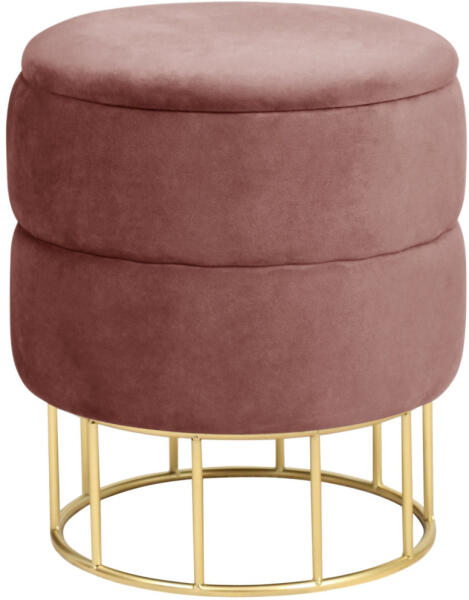 Elegáns, többfunkciós bársony puff arany színű fém lábakkal és praktikus tárolóhellyel. A puha, púderrózsaszín kárpitozás és a modern dizájn tökéletes kiegészítője bármely nappalinek vagy hálószobának. Stílusos tárolás és kényelem egybenAz Elza puff egy sokoldalú bútordarab, amely ötvözi az elegáns megjelenést a praktikus funkcionalitással. A puha, púderróz