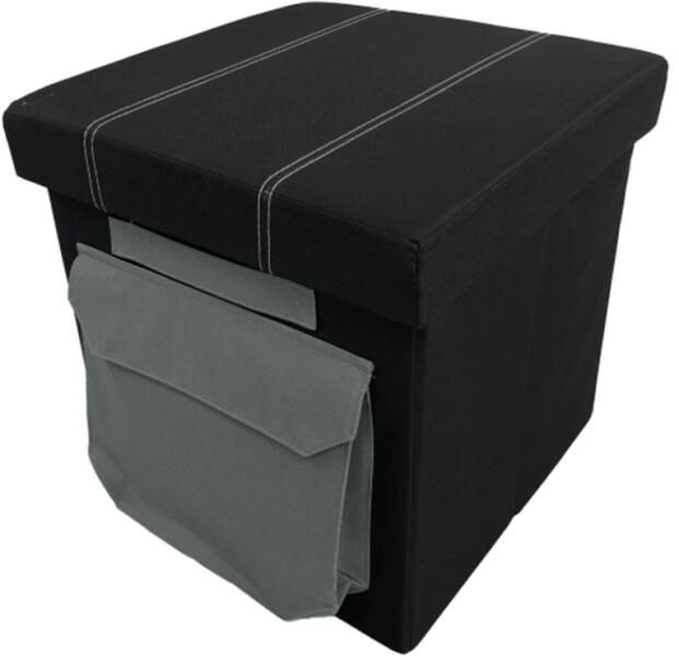 Nappali bútor > Ülőkék és babszákok > Ülőke, fekete anyag, IDANA Ülőke steppeléssel és tárolóval IDANA Anyag: anyag A szövet kopásállósága: 90 000 Martindale Szín: fekete Méretek (SzéxMéxMa): 37,5x38x37,5 cm Terhelhetőség: 90 kg Lapraszerelten szállítva