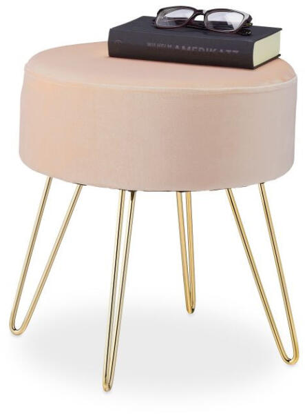 Elegáns kialakítású zsámoly bézs-arany színben A 4 arany hajtűlábas bársony zsámoly luxust és eleganciát kölcsönöz minden helyiségnek. A bársony ülőke ugyanúgy figyelemfelkeltő, mint dekoratív a szoba sarkában, mint klasszikus puff a fésülködőasztal előtt vagy oldalszék a kanapé mellett. A kerek hálószobaszék párnázott ülése is kényelmes és puha ülésélmé