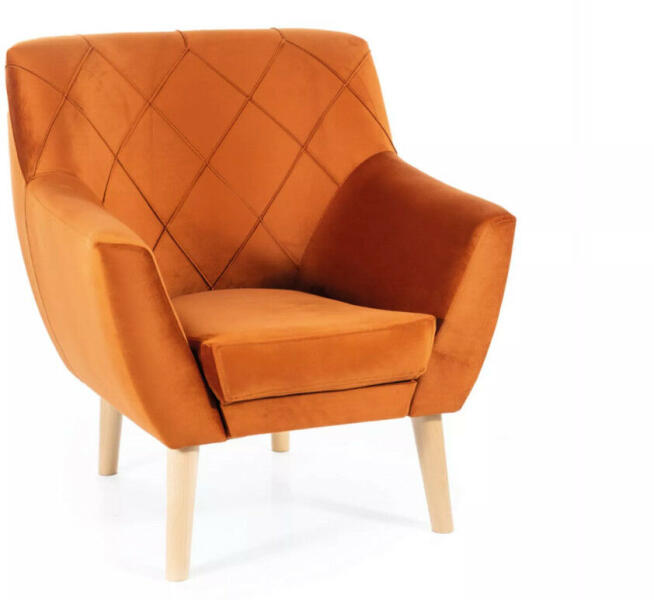 Elegáns kényelem skandináv stílusban A Kier fotel a modern design és a klasszikus kényelem tökéletes ötvözete. A fahéjszínű bársony kárpitozás és a rombusz mintázatú varrás egyedi megjelenést kölcsönöz a bútornak. A magas háttámla és az ergonomikus kialakítás maximális kényelmet biztosít, míg a természetes bükkfa lábak stabil alapot nyújtanak. Ez a fotel tök